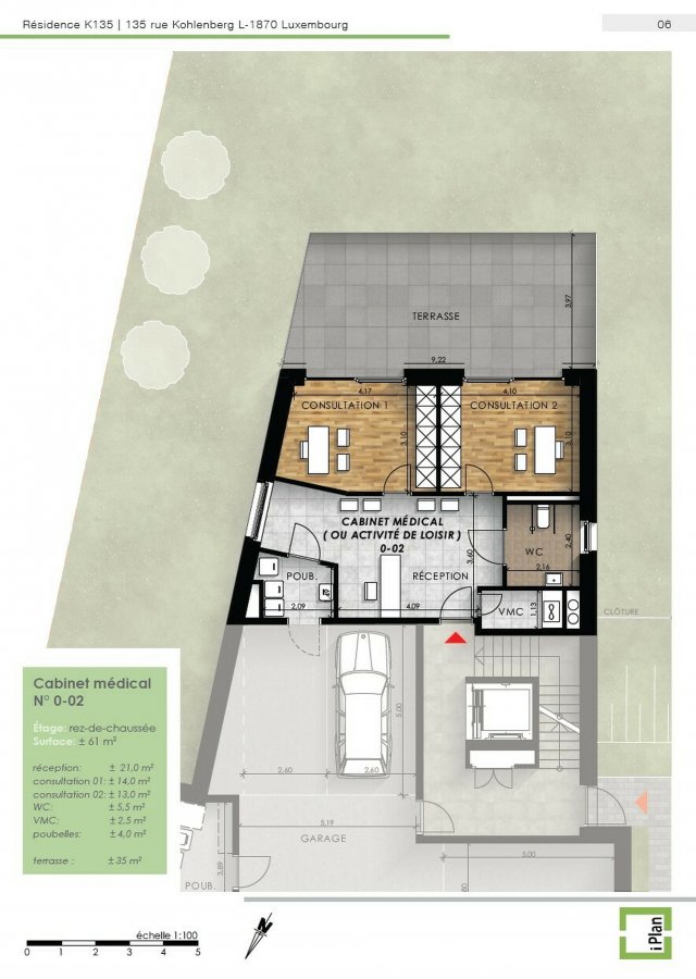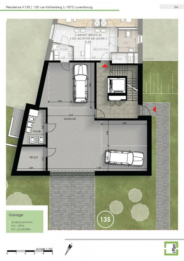 Nouveau Cabinet / Local Professionnel ? Résidence "K135" à CESSANGE - 135, rue Kohlenberg - Luxembourg-CessangeSitué au rez-de-chaussée de la prestigieuse résidence neuve "K135", le Lot 2 est un local de 73,48 m2 idéal pour une profession libérale, un cabinet médical, paramédical ou toute autre activité professionnelle nécessitant une adresse de qualité dans un quartier résidentiel recherché.