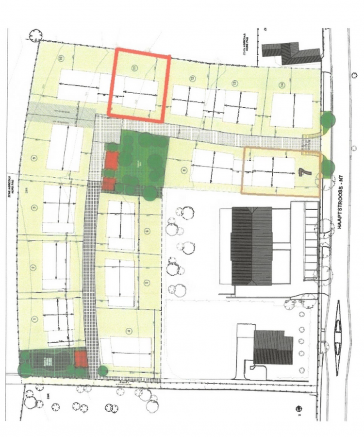In Hoscheid-Dickt zu entdecken: ein Baugrundstück (LOT 11) mit einer Fläche von 5,44 Ar, perfekt für den Bau einer Doppelhaushälfte, die durch die Garage verbunden ist.